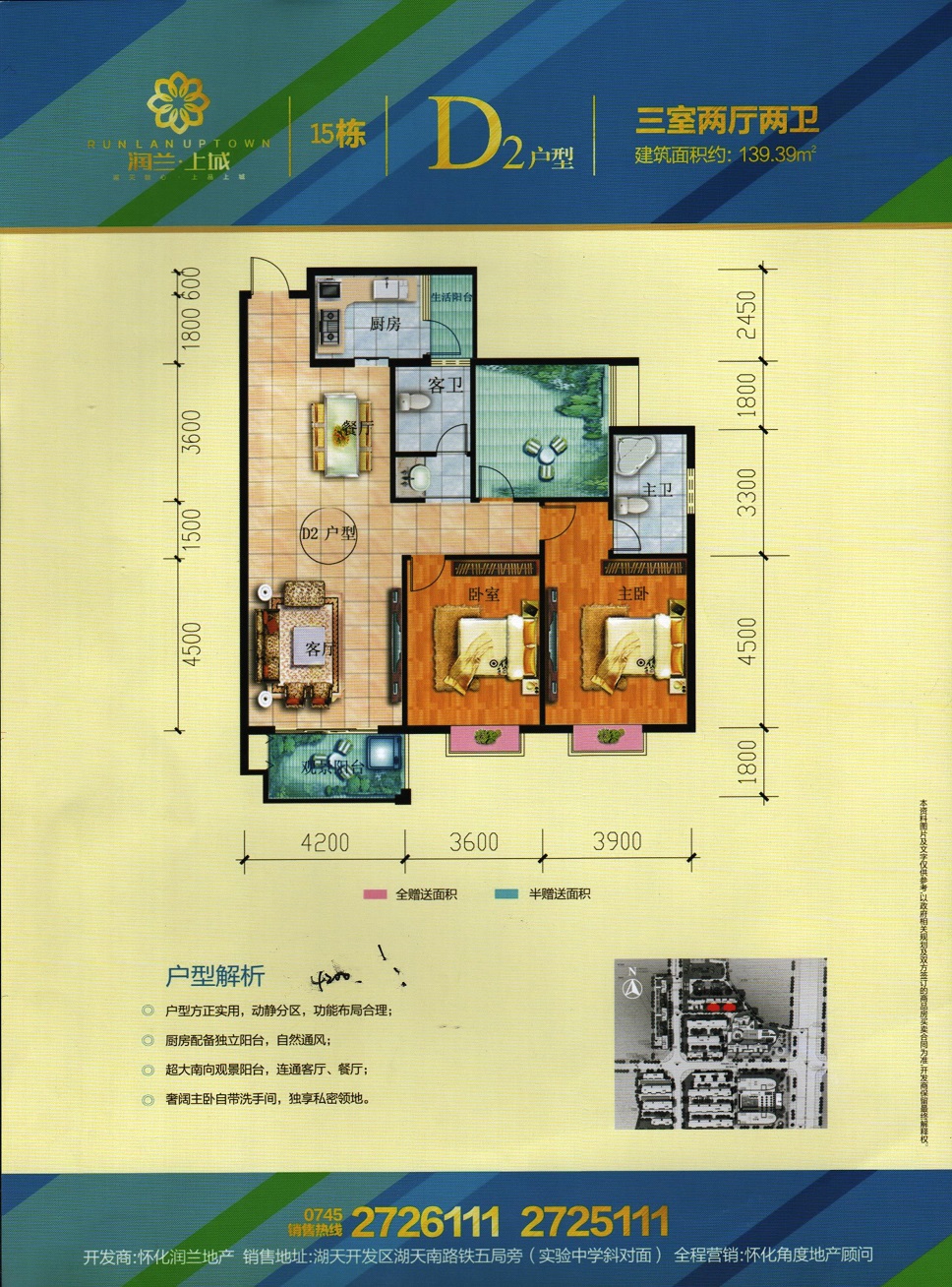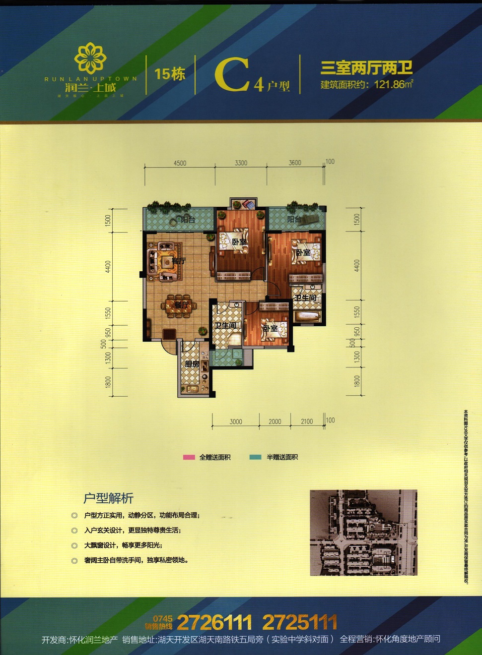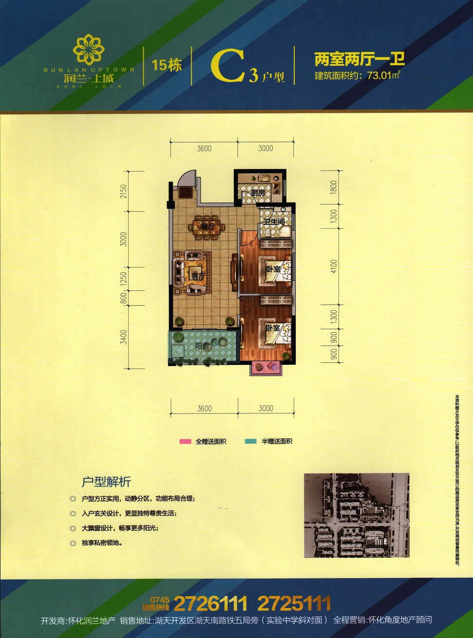 由怀化润兰房地产开发有限责任公司开发,地处怀化市湖天开发区,总占地面积120亩,总建筑面积约26万平米,容积率4.34,总户数约700户,停车位1500个,项目由3栋高层住宅及一栋酒店和一栋办公楼组成。项目与天星广场及太平溪风光带仅咫尺之遥。