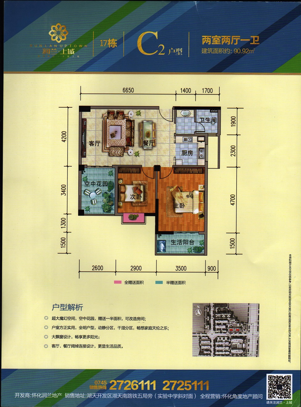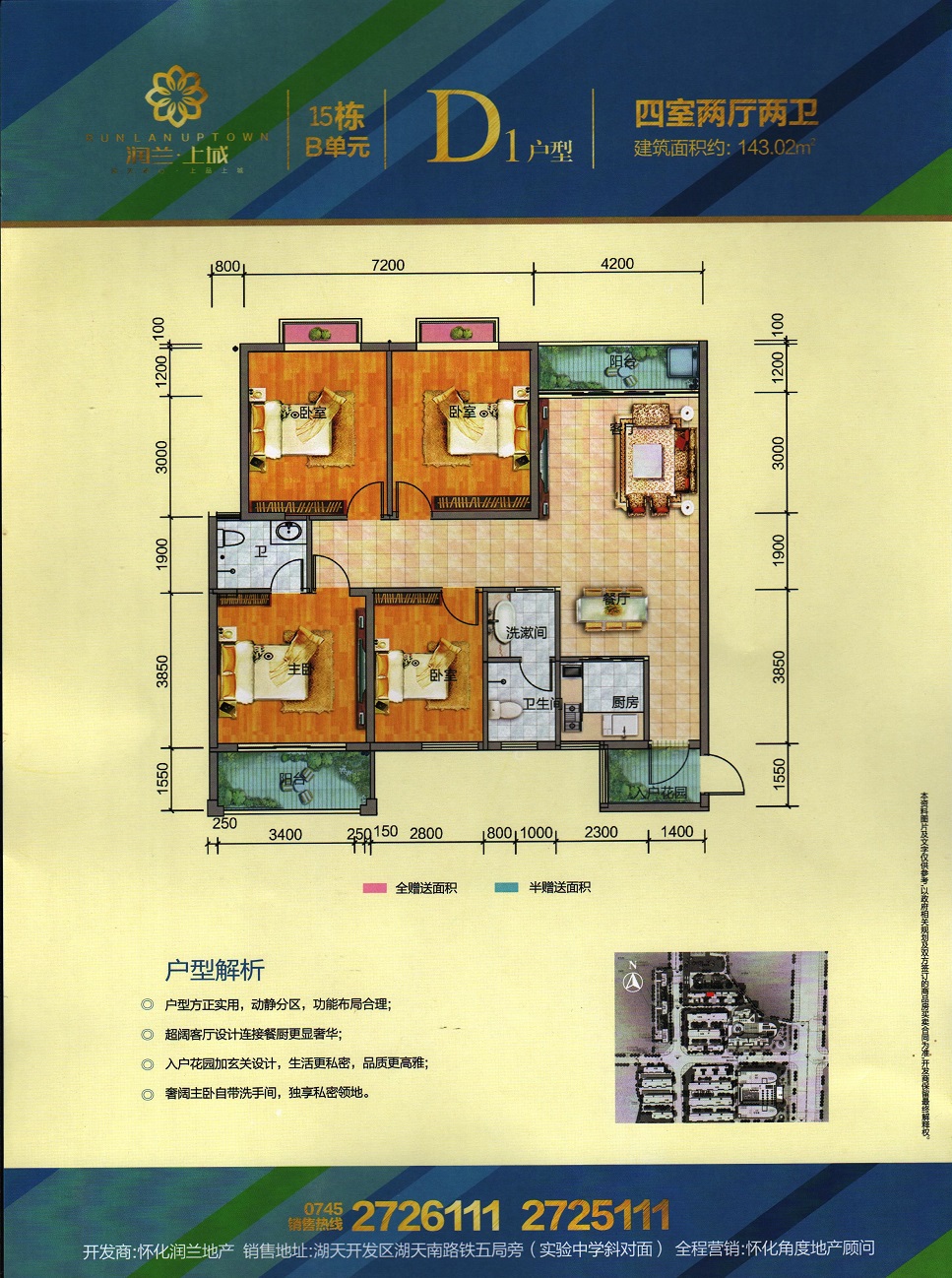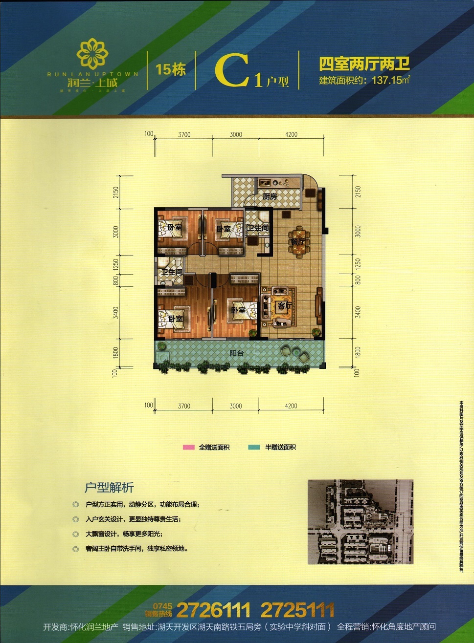 由怀化润兰房地产开发有限责任公司开发,地处怀化市湖天开发区,总占地面积120亩,总建筑面积约26万平米,容积率4.34,总户数约700户,停车位1500个,项目由3栋高层住宅及一栋酒店和一栋办公楼组成。项目与天星广场及太平溪风光带仅咫尺之遥。
